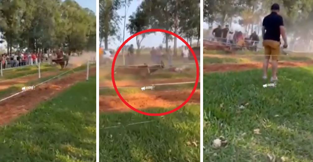 Un grave incidente tuvo lugar en el hipódromo de la Comunidad de San Miguel de Guazú Ygua, ubicado en el distrito de San Pedro del Paraná, cuando uno de los caballos que participaba en una carrera sufrió una caída inesperada, generando preocupación entre los asistentes. – (Foto captura de pantalla).