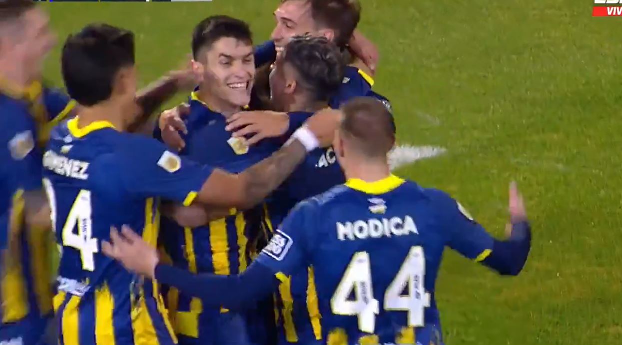 El lateral izquierdo paraguayo, Alan Rodríguez, de 23 años, se destacó con un golazo en el «Gigante de Arroyito», poniendo el 3-0 parcial a favor de Rosario Central contra Sarmiento. – (Foto captura de pantalla).