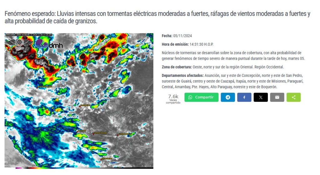 — Dirección de Meteorología e Hidrología – DMH (@DMH_paraguay) November 5, 2024
