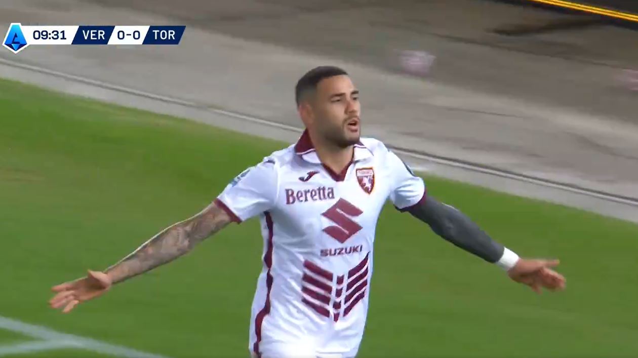 Desde el comienzo del partido, Sanabria demostró que sería una amenaza constante para la defensa del Hellas Verona. Apenas al minuto 10, recibió una pelota cerca del área grande, y con una recepción orientada de gran calidad, logró dejar a varios marcadores atrás, para finalmente definir con mucha clase. El delantero paraguayo se lanzó al piso, pero su toque preciso fue suficiente para enviar el balón al fondo de la red, abriendo el marcador para el Torino.