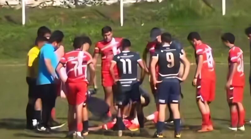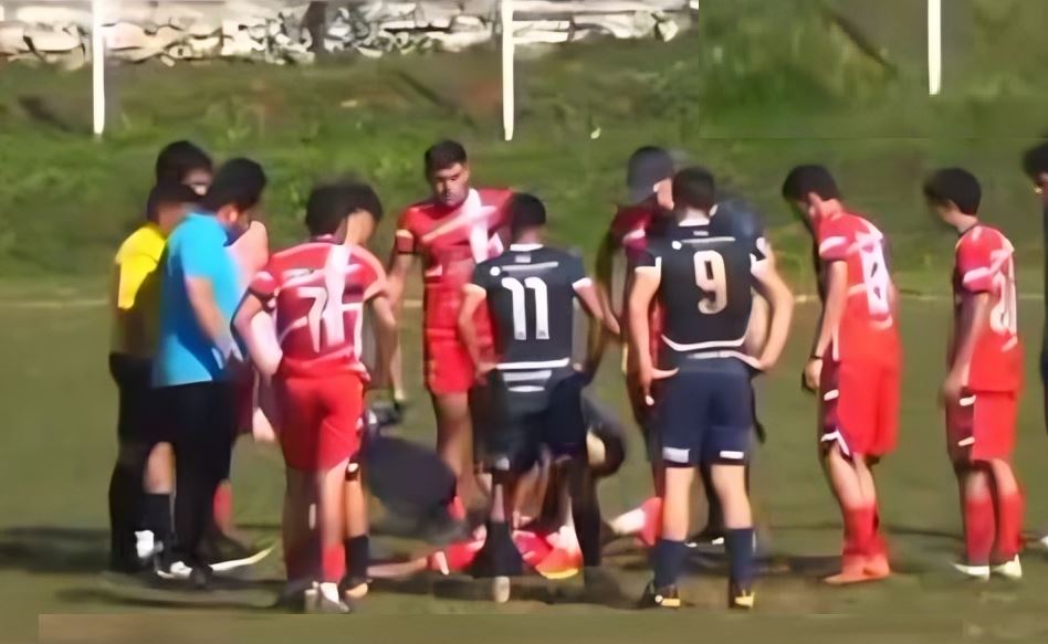 Un momento de máxima tensión y angustia se vivió durante un encuentro juvenil de la Liga Caacupeña, cuando un joven futbolista del club Sol de Mayo cayó al suelo tras un salto mal ejecutado y quedó completamente inconsciente. La rápida y valiente intervención del kinesiólogo Aldo Herrera, del club Teniente Fariña, evitó una tragedia.– ( Foto captura de pantalla de facebook )