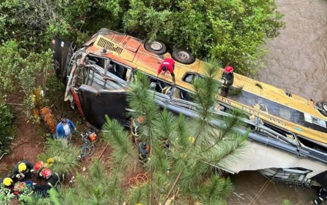 La provincia de Misiones, en la República Argentina amaneció con una noticia desgarradora. Un accidente ocurrido en plena madrugada del domingo 26 de octubre, sobre la Ruta Nacional 14, dejó un saldo de nueve personas fallecidas y más de veinte heridos. El hecho se produjo en la localidad de Campo Viera, cuando un ómnibus de la empresa Sol del Norte, que viajaba con destino a Puerto Iguazú, terminó cayendo desde un puente tras un violento choque con un automóvil. – (Foto captura de pantalla).